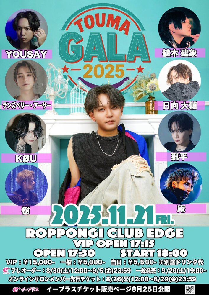 TOUMA"GALA2025"@六本木CLUB EDGE LIVE SCHEDULE 2025/11/21(金) 17:30 - 2025年11 六本木CLUB EDGE 開場17:30/開演18:00 ♦︎VIP ¥15,000- / 一般 ¥5,000-/当日¥5,500- (1ドリンク別途) ♦︎9月20日(土)19:00〜 一般発売開始 940001-P003000 詳細はこちらから URLをコピーする 報告する
